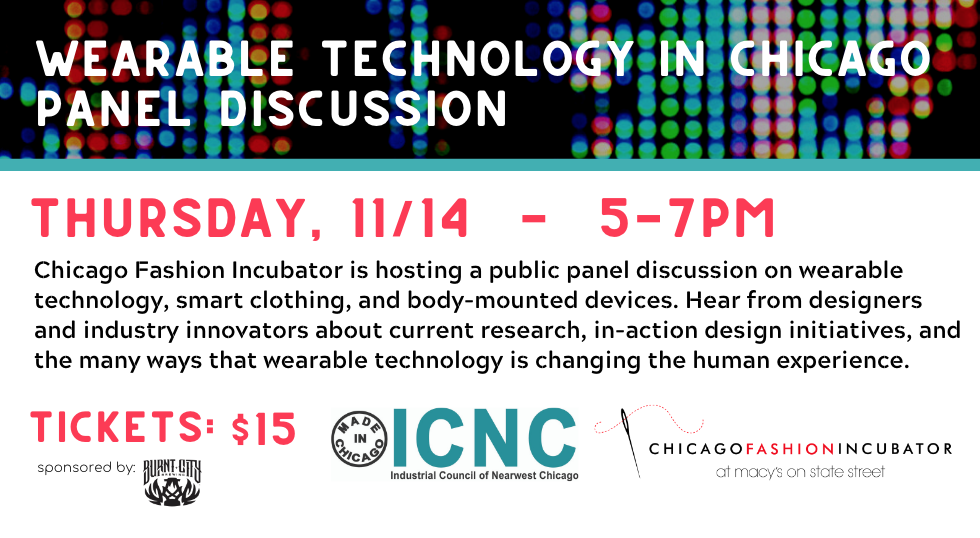 Chicago Fashion Incubator (CFI) hosted a public panel discussion on Wearable Technology in Chicago at Industrial Council of Nearwest Chicago (ICNC) on November 14, 2019. This public panel event was moderated by Chicago Fashion Incubator's Director of Programming, Anna Hovet and guest speakers included: Chris Houghton, Dani Louise Nathanson, Kathleen McCarthy, Lee Anderson, and Victor Mateevitsi. Topics discussed included current research, in-action design initiatives, and the many ways that wearable technology is changing the human experience. Special thanks to ICNC for hosting and to Burnt City Brewing for donating beer. For more information about similar events, please follow us on Instagram: @chicagofashioninc