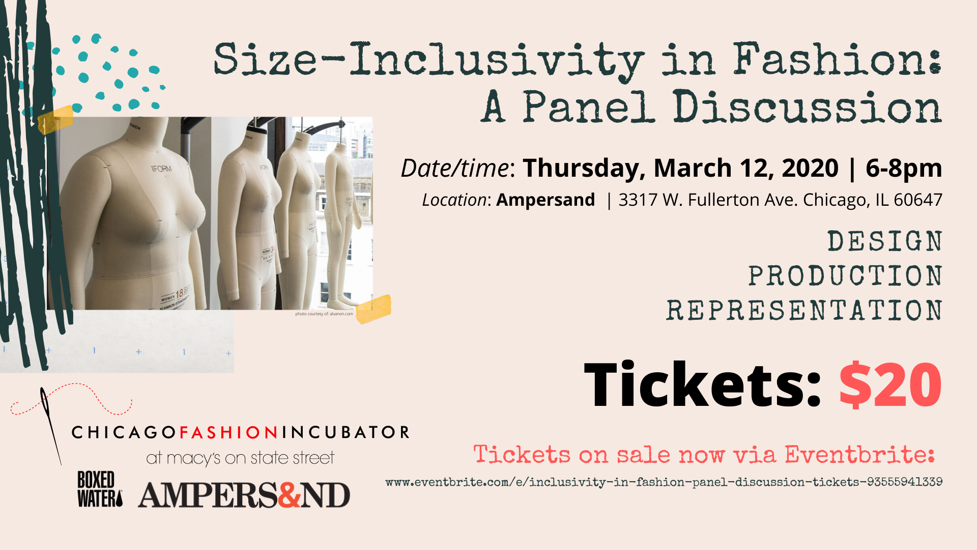 Chicago Fashion Incubator (CFI) hosted a sold-out public panel discussion on size-inclusivity in fashion at Ampersand in Logan Square on March 12, 2020. Topics discussed included designing with inclusivity in mind, strategizing retail sales around an underrepresented target market, and the current state of size-inclusivity in education and advertising. This public panel was moderated by Chicago Fashion Incubator Director of Programming, Anna Hovet. The panel of guest speakers include: Shannelle Armstrong-Fowler (Haute & Co), Natalie Craig (@natalieinthecity_), Sky Cubacub (Rebirth Garments), Robin Harris (Model Atelier & Confidence Apparel), Lauren Downing Peters, PhD (@fatfashionhistory - did not attend), and Gibeon Tolbert (@gibeontolbert). Special thanks to event sponsors Boxed Water and Ampersand. Follow us on Instagram @chicagofashioninc for the latest, and follow the hashtag #fashioninclusivitychicago.